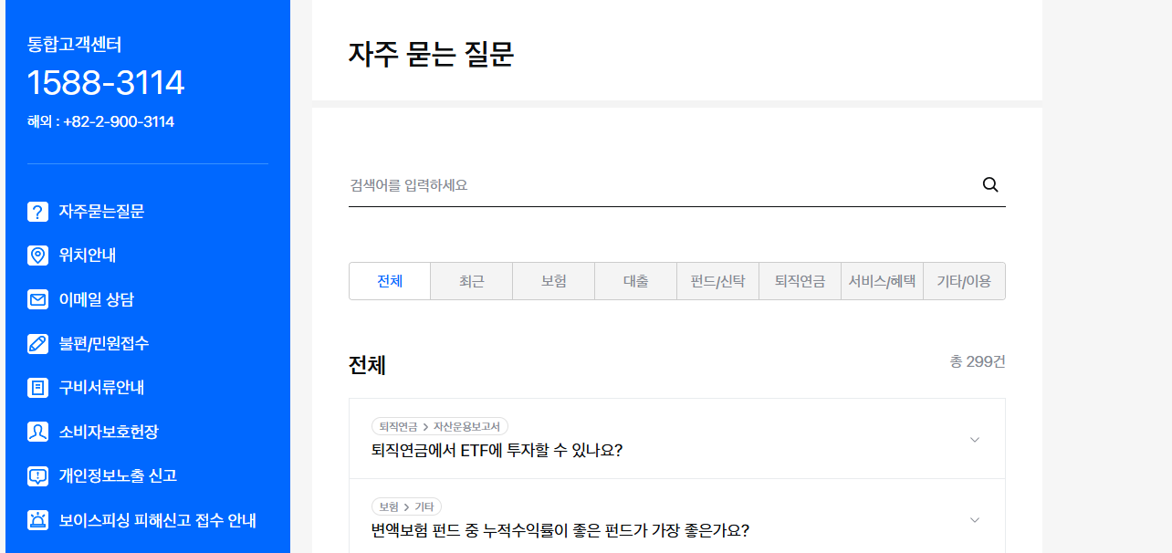 - 생명보험, 퇴직연금, 다이렉트보험은 상담 부서가 나뉘어 있으므로, 본인의 계약 유형에 맞는 번호를 선택해야 한다.