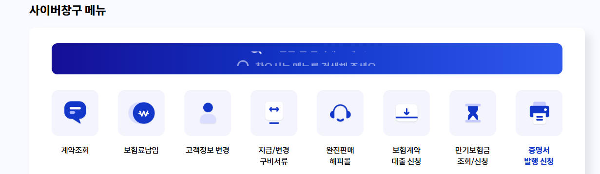 - 증명서(보험가입 증명, 납입 증명서 등) 발급