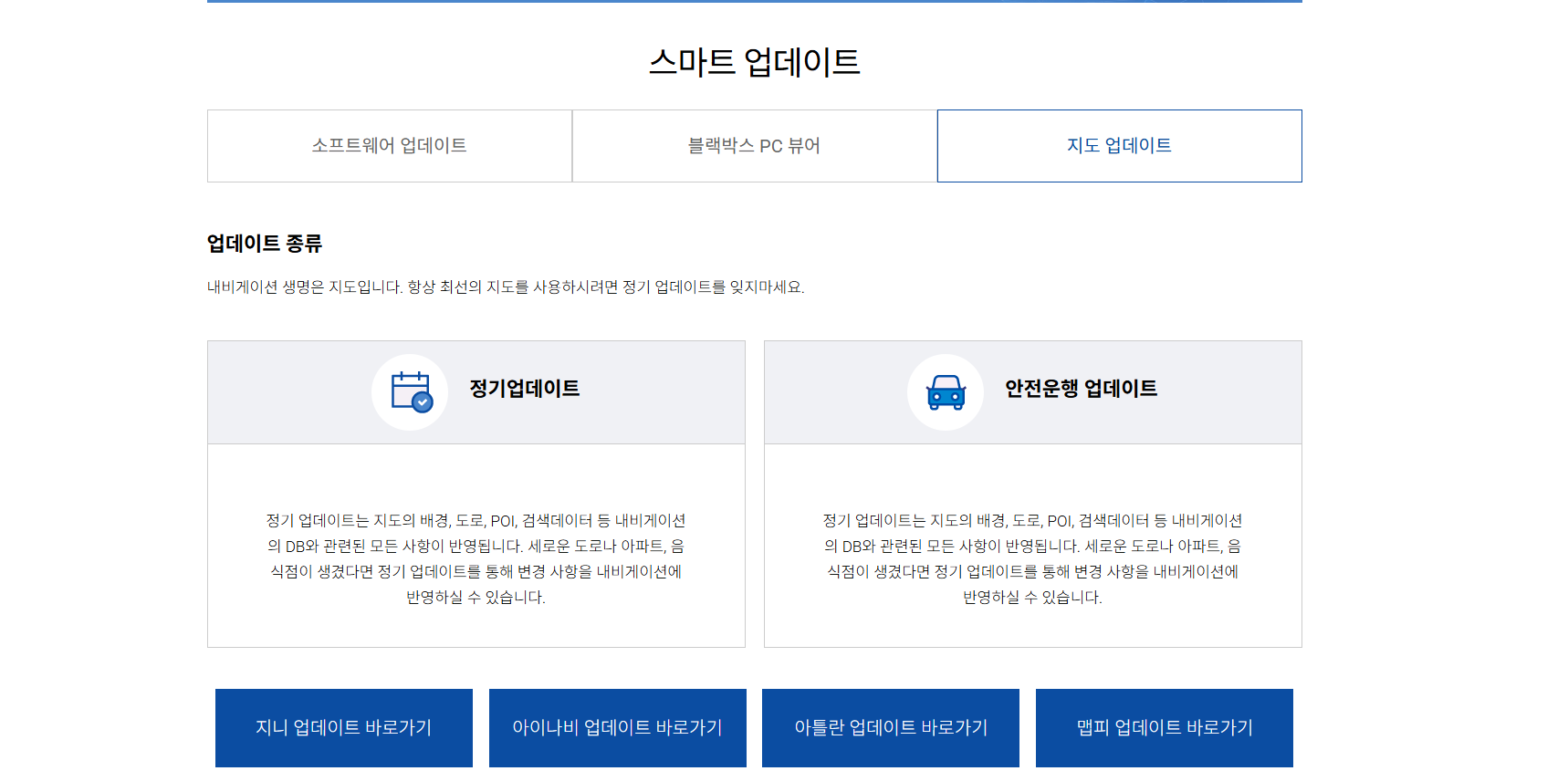- 기존 데이터는 백업하고, 최신 소프트웨어 및 지도로 갱신됩니다.