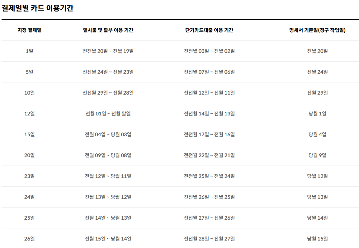 결제일 변경 직전이나 직후에 사용한 내역이 명세서에서 빠지는 일시적 공백이 생길 수 있으므로 반드시 사용기간을 파악해 두어야 합니다.